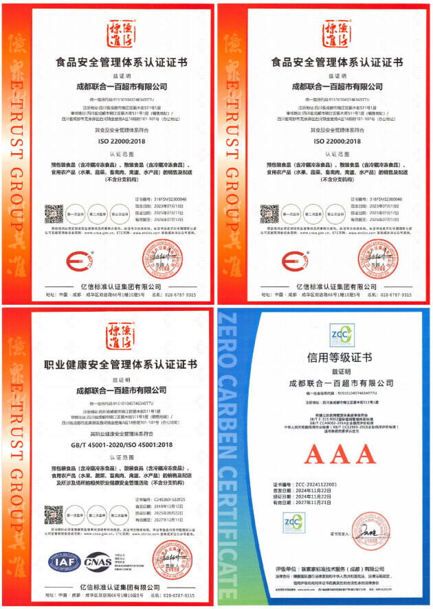 联合一百自 2011 年创立以来,始终扎根民生零售赛道,以 “中国智能折扣便利超市” 为核心定位,历经十五年发展,已构建起覆盖全国 10 余个省市自治区的零售网络,旗下拥有 1000 余家连锁超市及便利店,成为集连锁经营、物流配送、电子商务于一体的现代化商业连锁品牌。凭借完善的供应链体系、数字化的运营模式、标准化的品牌视觉体系以及多元化的便民服务,联合一百斩获 “AAA 级信用企业”“重合同守信用企业”“3?15 诚信企业” 等多项荣誉,先后通过 ISO9001 质量管理体系、ISO22000 食品安全管理体系等多项国际国内权威认证,在消费者心中树立了优质、实惠、便捷的品牌形象。